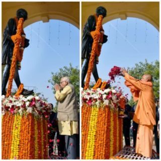 उत्तर प्रदेश के राज्यपाल राम नाईक जी और मुख्यमंत्री योगी आदित्यनाथ जी ने महात्मा गांधी जी की पुण्यतिथि पर जी0पी0ओ0 स्थित उनकी प्रतिमा पर पुष्पांजलि अर्पित की। इस अवसर पर उन्हांेने गांधी जी के प्रिय भजनों को भी सुना।
