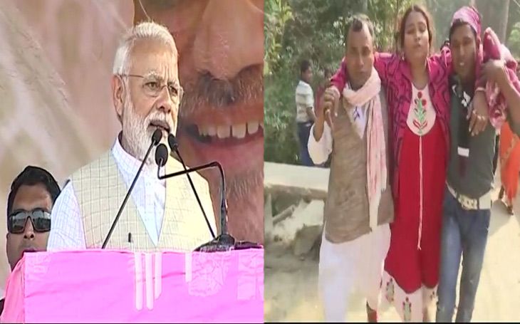 उन्होंने कहा, ”हमने अपने बजट में कदमों की घोषणा की है जिससे 12 करोड़ छोटे किसानों, 30-40 करोड़ कामगारों और तीन करोड़ मध्यम वर्गीय लोगों को फायदा मिलेगा। रैली में भगदड़ जैसी स्थिति उत्पन्न होने पर मोदी को भाषण को 14 मिनट में ही खत्म करना पड़ा। रैली से पहले प्रधानमंत्री मतुआ ठाकुरबाड़ी गए और समुदाय की नेता और मतुआ महासंघ के संस्थापक हरीशचंद्र ठाकुर की विधवा बारो माॉ का आशीर्वाद लिया।