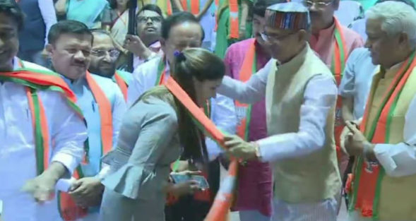हरियाणवी डांसर और सिंगर सपना चौधरी आखिरकार आधिकारिक तौर पर भारतीय जनता पार्टी (बीजेपी) में शामिल हो गईं। रविवार को BJP के एक कार्यक्रम में सपना चौधरी के सदस्यता ग्रहण की। इस मौके पर शिवराज सिंह चौहान, मनोज तिवारी, हर्षवर्धन सिंह जैसे कई सीनियर नेता मौजूद थे। बता दें कि आज राजधानी दिल्ली के जवाहर लाल नेहरू स्टेडियम में भारतीय जनता पार्टी का सदस्यता अभियान है। इसी कार्यक्रम में सपना चौधरी बीजेपी की मेंबर बनीं।
