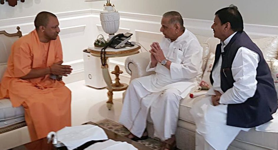 मुलायम सिंह यादव से उनके घर मिलने गये CM सीएम योगी, शिवपाल भी रहे मौजूद.