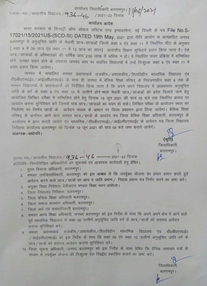 बलरामपुर जनपद में अनुसूचित जाति के मेघावी छात्रों के लिए सुनहरा अवसर