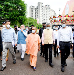 उत्तर प्रदेश के मुख्यमंत्री योगी आदित्यनाथ ने लखनऊ में इस माह के प्रथम सप्ताह में प्रधानमंत्री जी के प्रस्तावित कार्यक्रम के आयोजन स्थल का आज निरीक्षण किया। उन्होंने अधिकारियों को निर्देशित किया कि सभी सम्बन्धित विभाग अन्तर्विभागीय समन्वय के माध्यम से सभी तैयारियों को व्यवस्थित ढंग से पूरा करें। उन्होंने कार्यक्रम स्थल में स्थापित किए जा रहे उत्तर प्रदेश पवेलियन, स्टॉलों व मॉडलों का अवलोकन किया तथा आवश्यक निर्देश दिए।